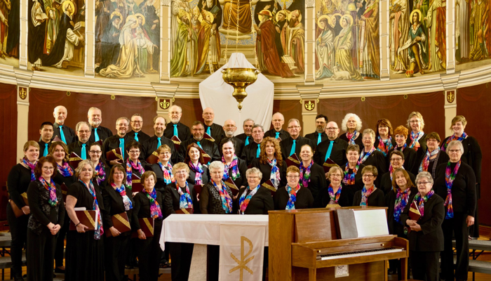 St. Peter’s Chorus is a choir of mixed voices with a long proud history that began at St. Peter’s College, Muenster, Saskatchewan, Canada. Members come from the surrounding towns and farms. The chorus was formed in 1967 by Al Gerwing and has been blessed with very talented directors and accompanists over the many years of its existence. Maxine Moore first began directing the chorus in 1987 and she is the current director. Ian Elliott began accompanying the chorus in 2025. Under their skillful leadership the chorus prepares a repertoire of music for two Christmas concerts and two spring concerts. Rehearsals are Monday evenings at Westminster United Church in Humboldt.